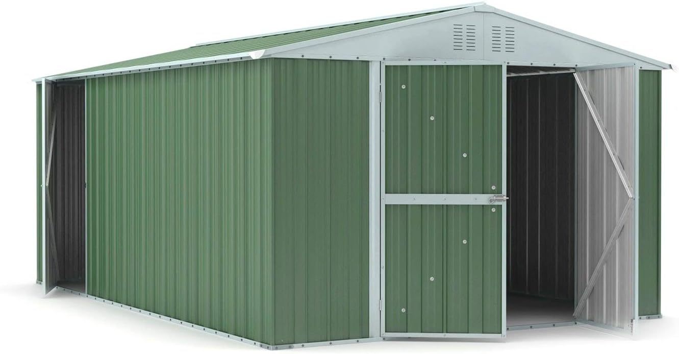 Box Casetta da Giardino in acciaio zincato 3,27x4,59x2,17 m 15,01 m2 verde 201 kg