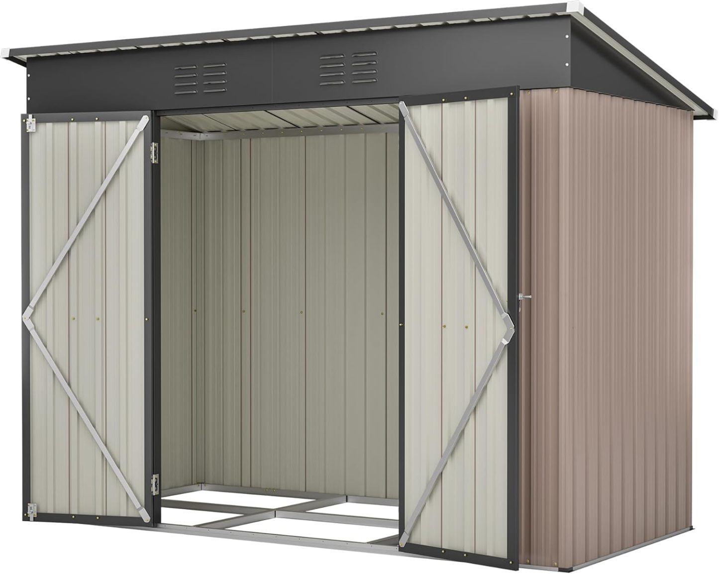 Casetta da Giardino in Metallo 229x111x182 cm con Base in Metallo (Senza Pavimento), Marrone