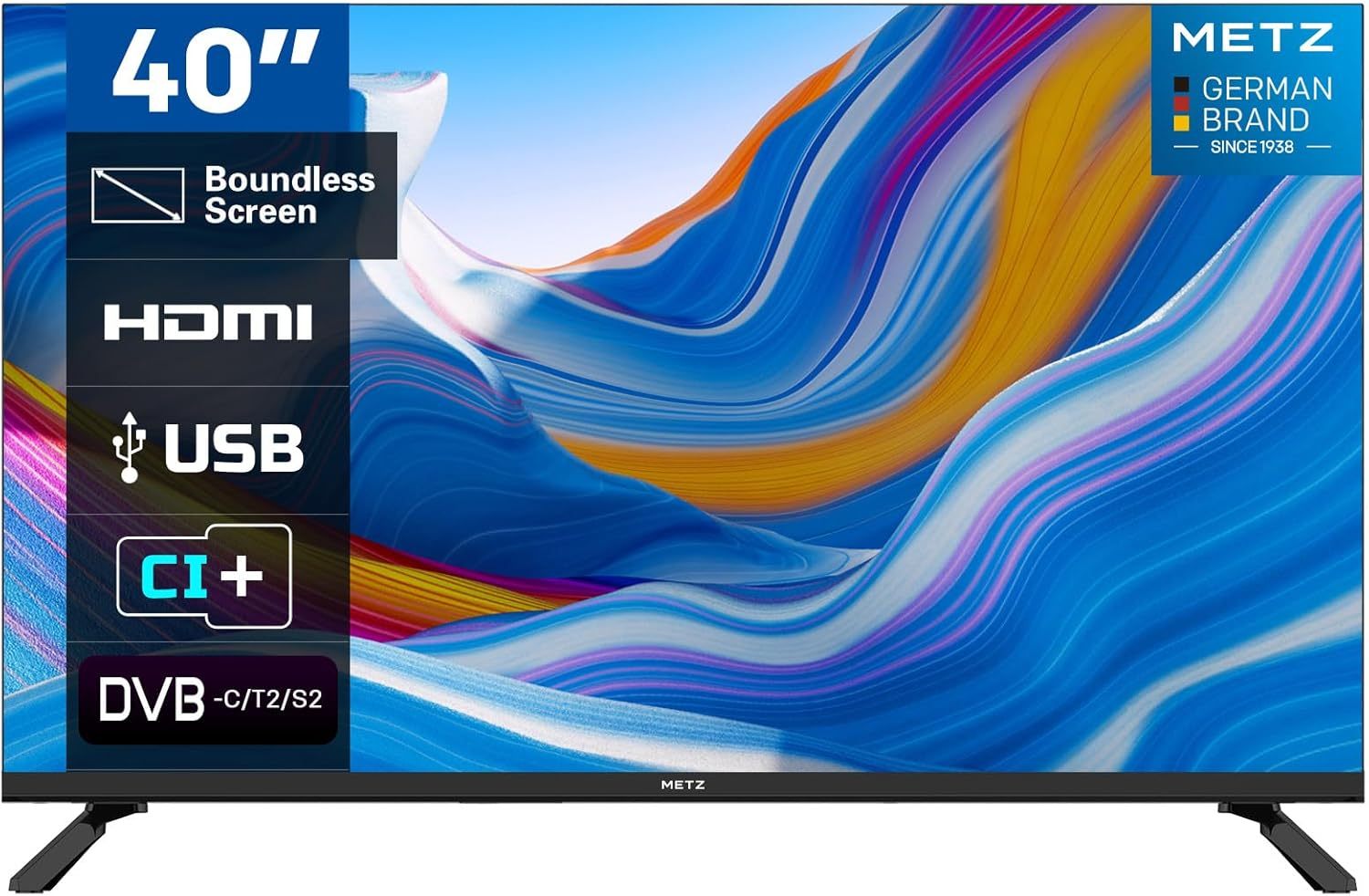 Metz MTE2000Z 40 Pollici Full HD LED TV 1920x1080 con Dolby Digital, Direct LED, Borderless Design, HDMI, USB, DVB-T2 C S2 CI