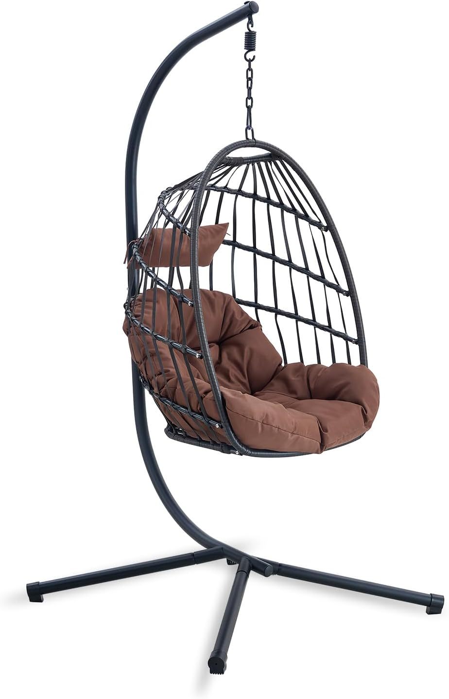 Sedia a Uovo Sospesa da Giardino con Telaio Pieghevole Nero e Marrone con Seduta Imbottita