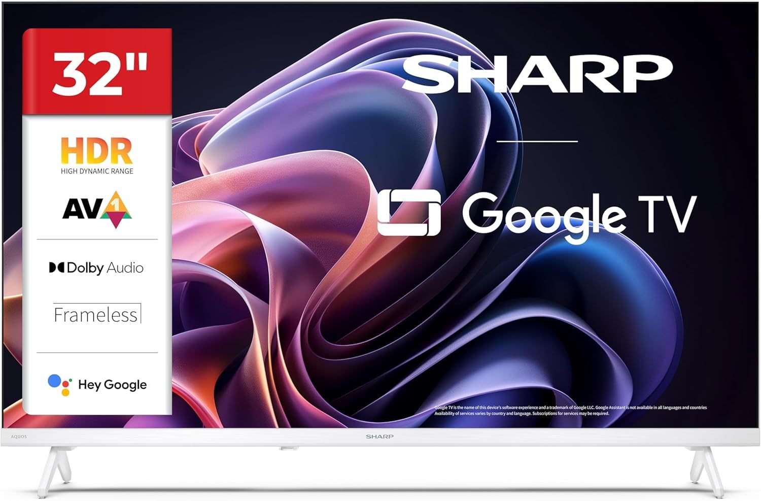 Sharp 32HF2365EW è una TV LED da 32 pollici HD con Google TV integrato, progettata per offrire intrattenimento smart in un design frameless elegante di colore bianco.