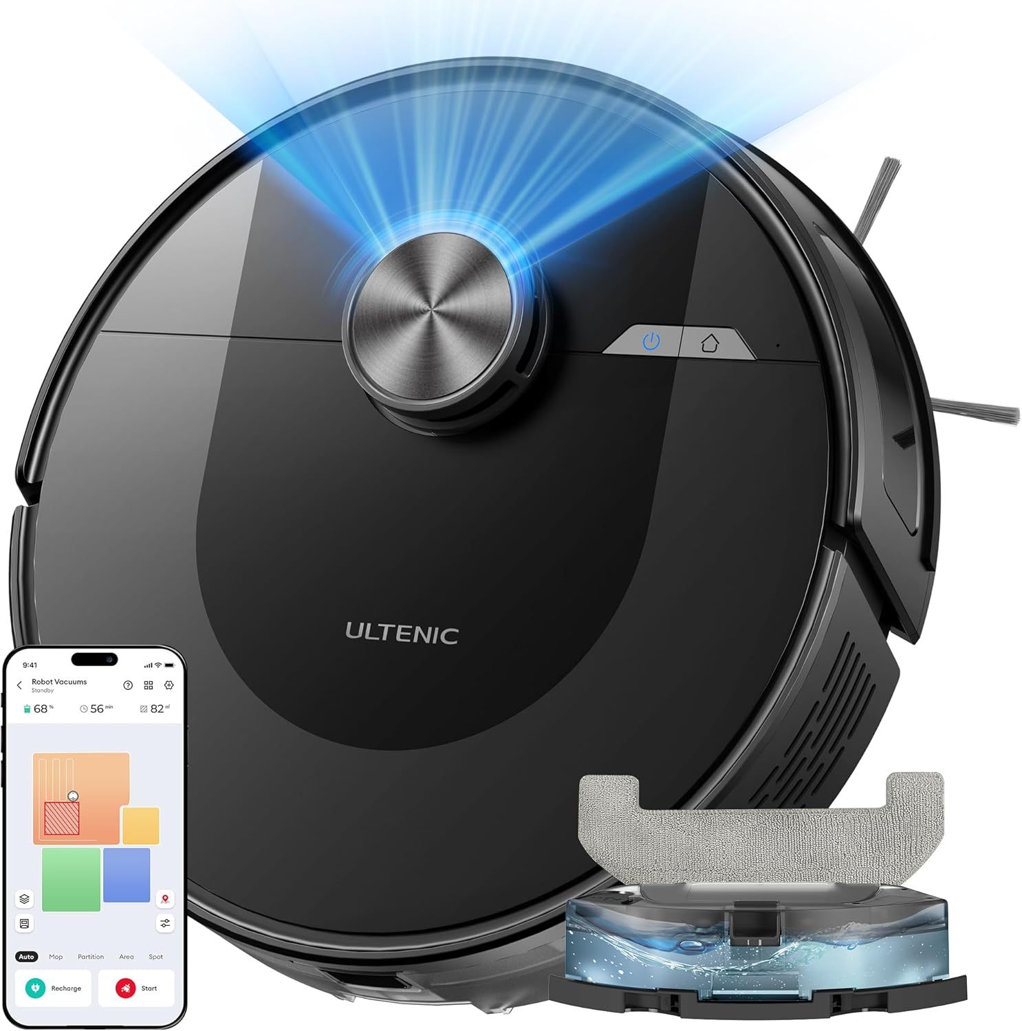 Ultenic D10 è un robot aspirapolvere lavapavimenti con funzione di mappatura intelligente, progettato per la pulizia di pavimenti duri, moquette, parquet e pavimenti in legno. È indicato anche per la gestione efficace dei peli di animali domestici.